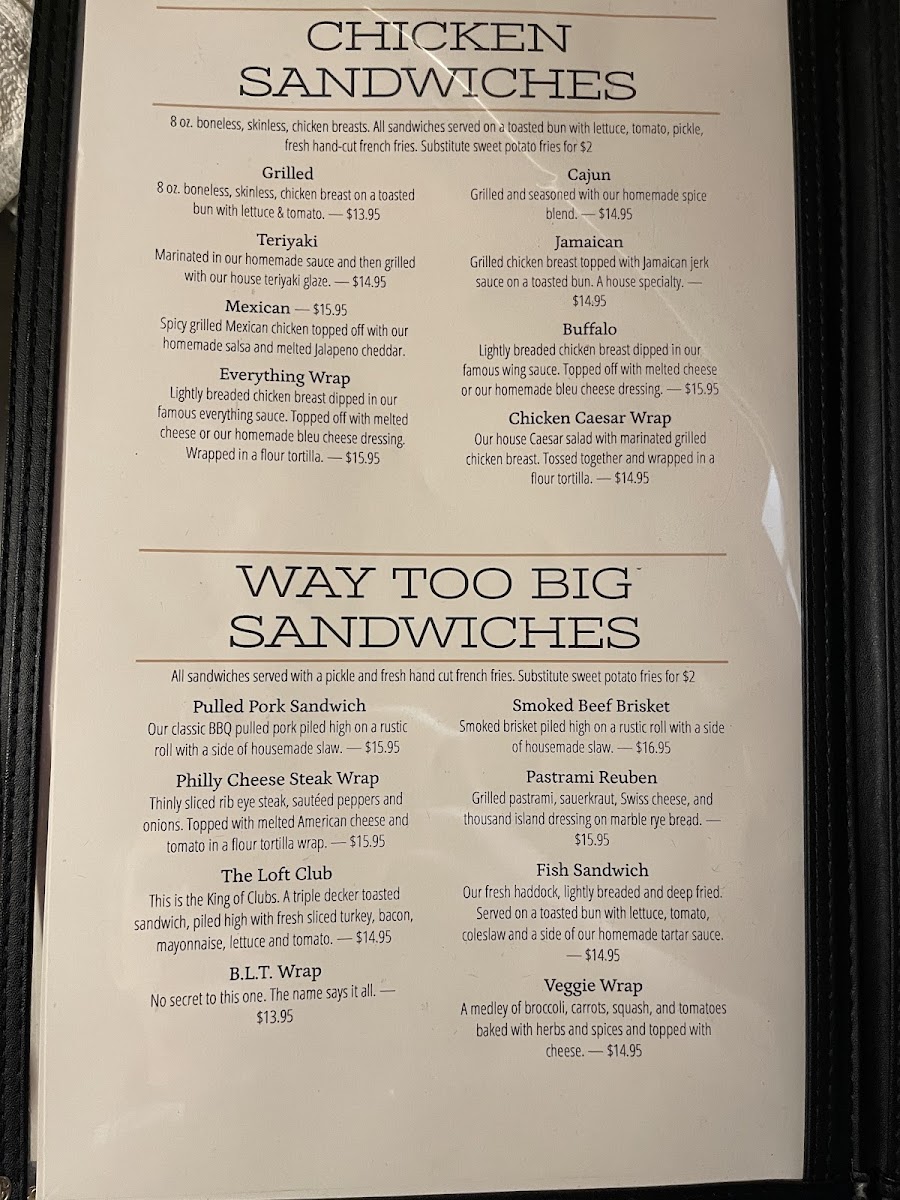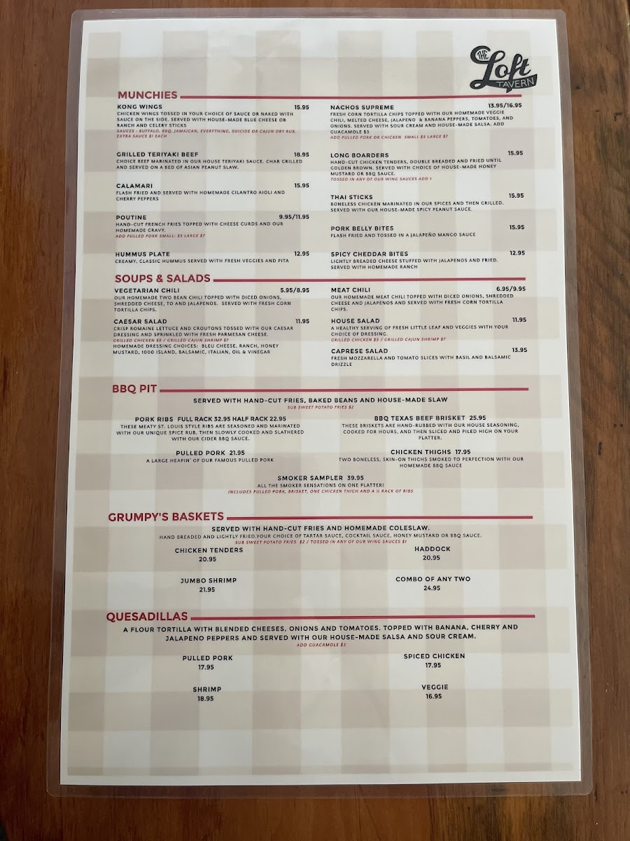 From mouthwatering appetizers to satisfying entrees, each dish is crafted with care, using fresh, locally sourced ingredients whenever possible. The menu features a blend of classic comfort foods and creative twists, ensuring that every bite is full of flavor. The laid-back vibe of the tavern perfectly complements the inviting flavors, making it the ideal place to unwind with friends and family. Whether you're a regular or a first-time guest, The Loft Tavern promises a warm, welcoming experience and a menu that will leave you wanting more.